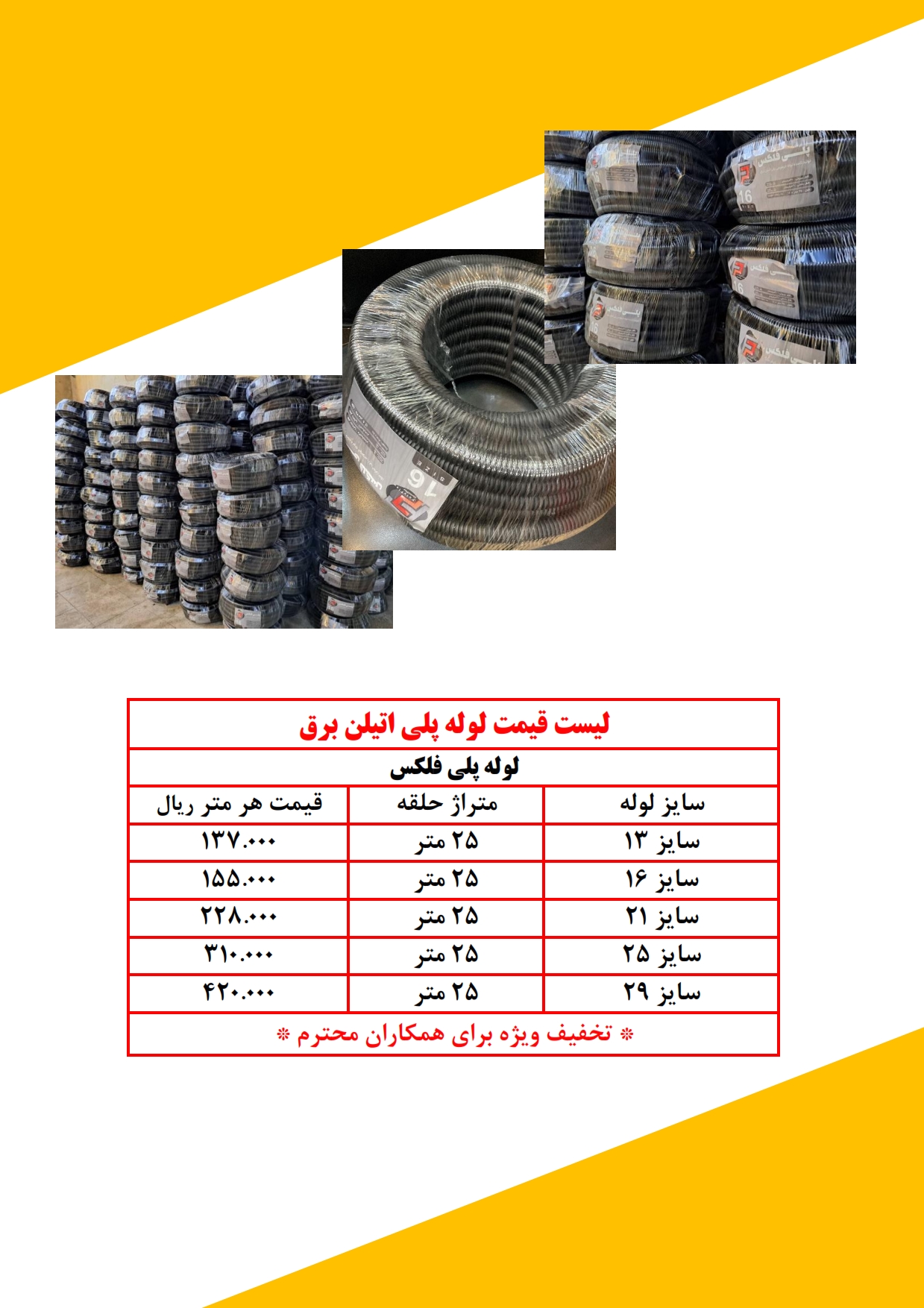لیست قیمت لوله فلکسی رهورد خراسان