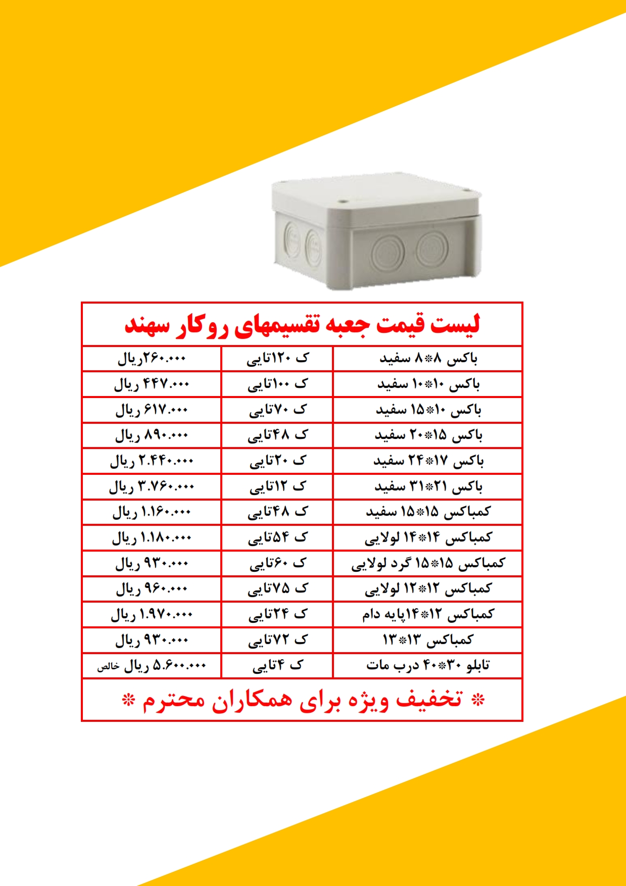 لیست قیمت جعبه تقسیم تهران باکس