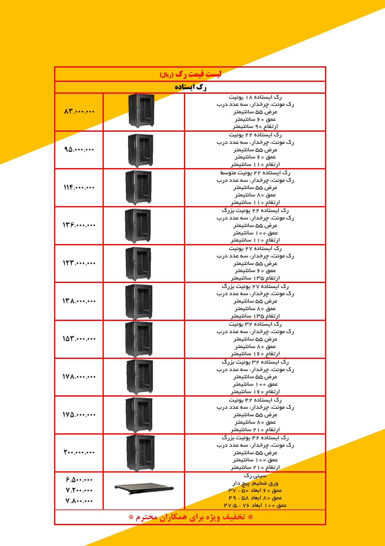 لیست قیمت رک ایستاده